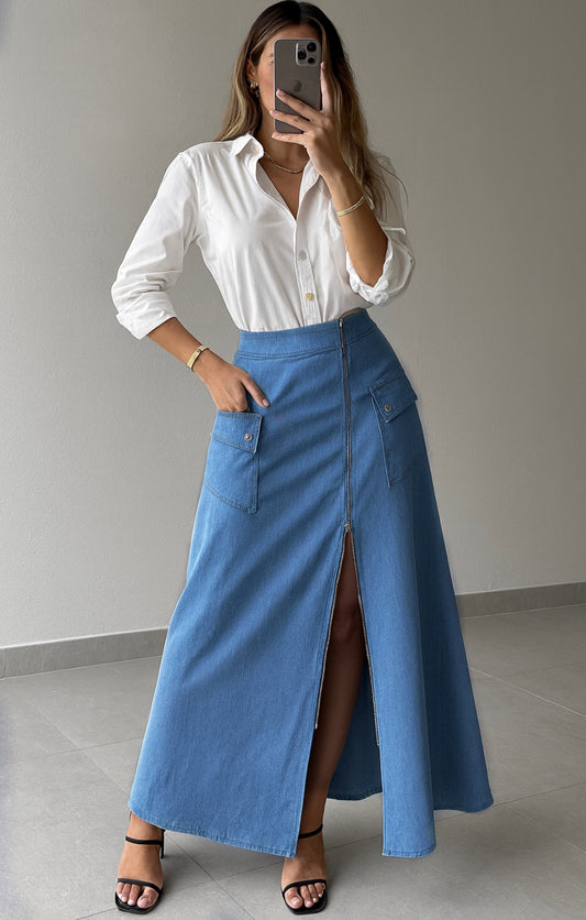 AHORRA 16%Falda cremallera chambray
