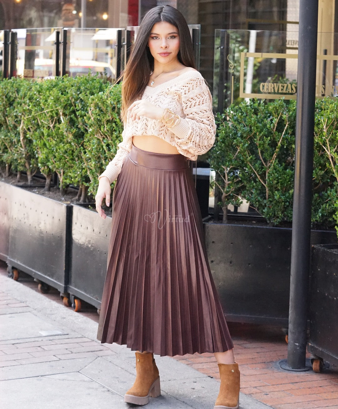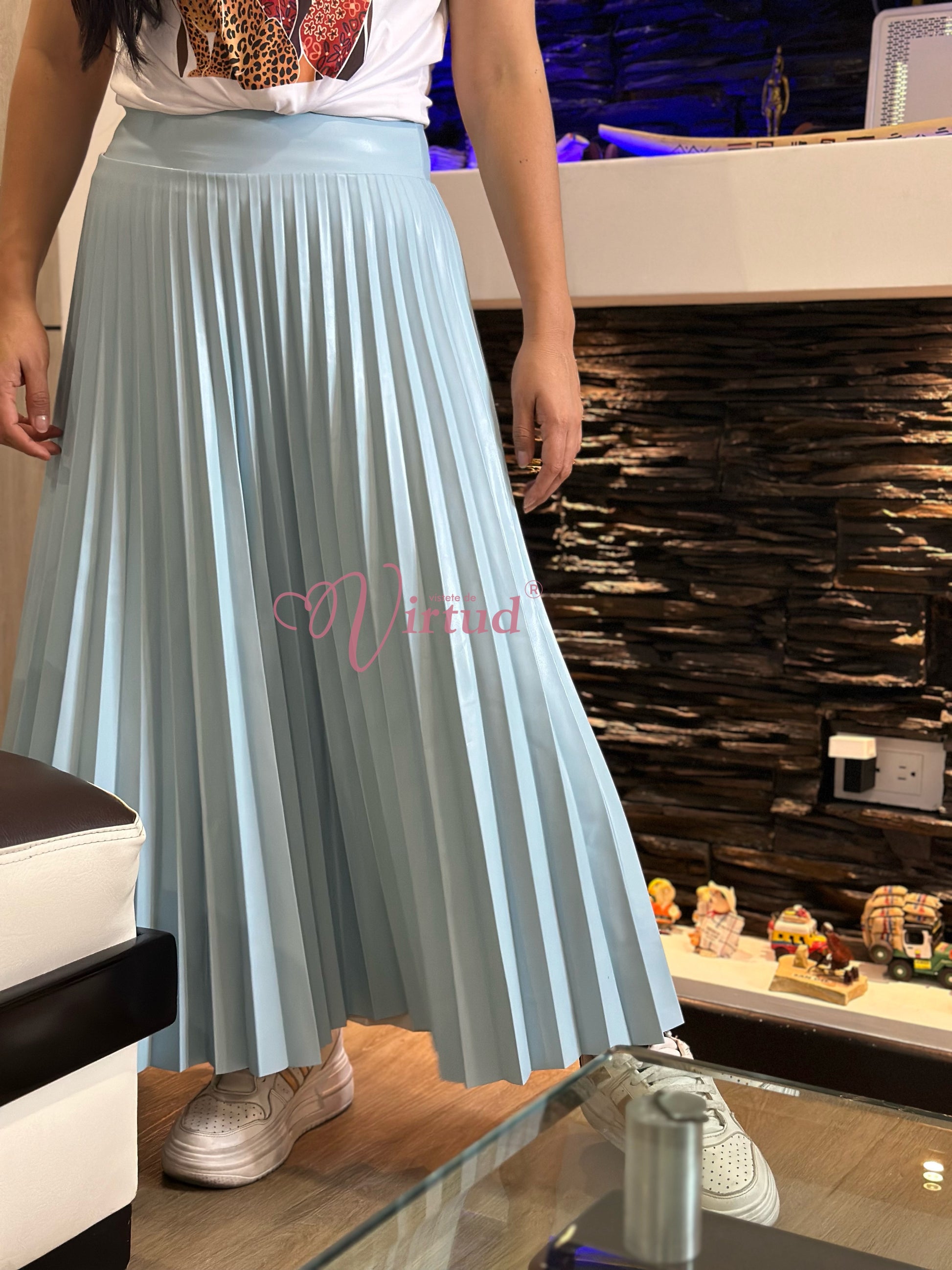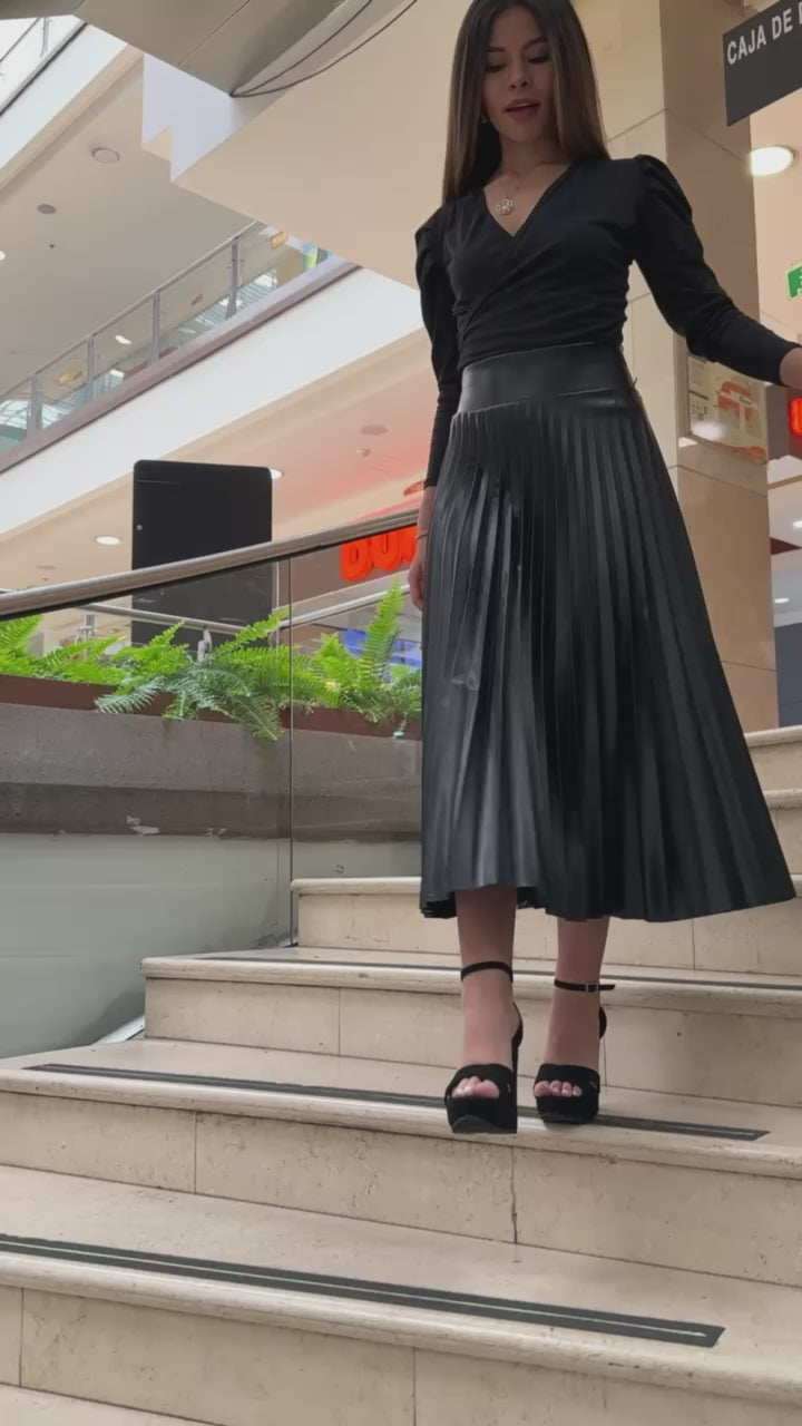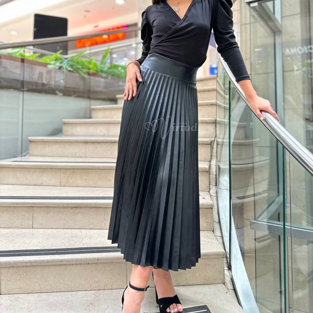 Falda plisada cuerotex larga